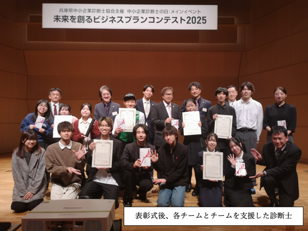 一般社団法人 兵庫県中小企業診断士協会が主催する、兵庫県内の大学生を対象とした「未来を創るビジネスプランコンテスト2025」を2025年11月8日(土)13:00より神戸市産業振興センター3階「ハーバーホール」で開催しました。中小企業診断士の皆様はもちろんのこと一般の方々も含め126名の来場をいただき、「中小企業診断士の日」記念イベントととしてもこれまでにない規模での開催となりました。