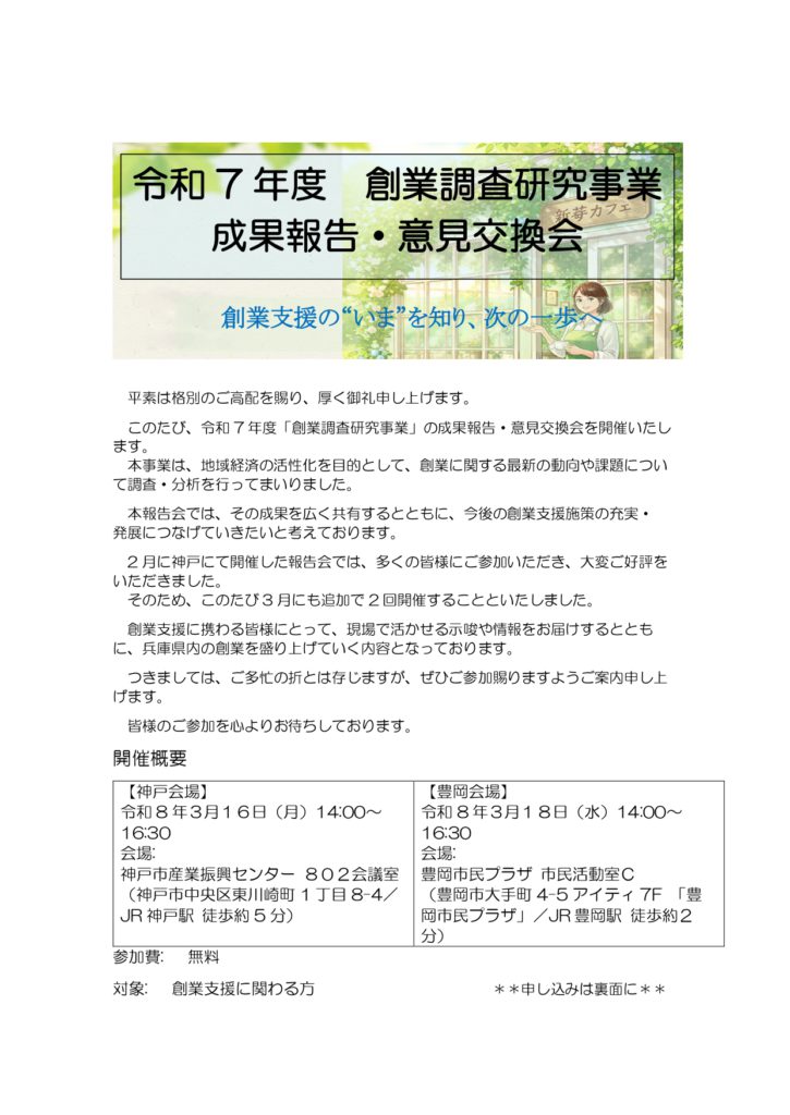 令和 7 年度 創業調査研究事業 成果報告・意見交換会のご案内