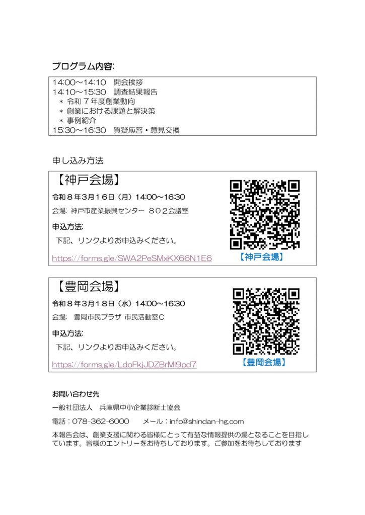 創業支援に携わる皆様にとって、現場で活かせる示唆や情報をお届けするとともに、兵庫県内の創業を盛り上げていく内容となっております。