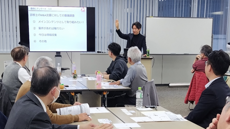 後半の「M&Aワークパート~生まれ変わる?M&A市場と診断士~」では、具体的な事例に基づき「診断士がどのように関わっていくか」理解を深めるグループワークが行われ、積極的な意見交換がなされました。